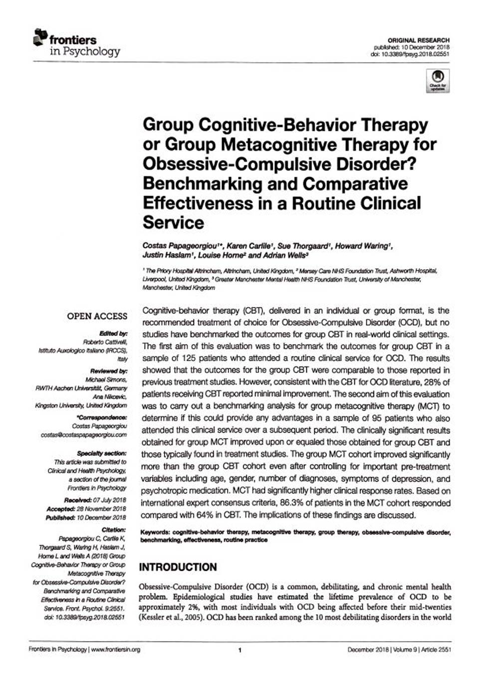 Welcome to the website of Dr Costas Papageorgiou, a highly qualified and experienced Clinical Psychologist, who provides online (via Zoom or Skype) and face-to-face Specialist Psychological Clinics based in the North West of England. These clinics deliver scientifically proven treatments for individuals with a range of mental health problems (e.g. depression, panic disorder, agoraphobia, specific phobias, social anxiety disorder, obsessive-compulsive disorder, generalised anxiety disorder, post-traumatic stress disorder, health anxiety, binge eating disorder, and hair pulling disorder) that are complex, severe, recurring or persistent and have not responded well to, or fully benefited from, other courses of treatment such as previous psychological interventions and medication.